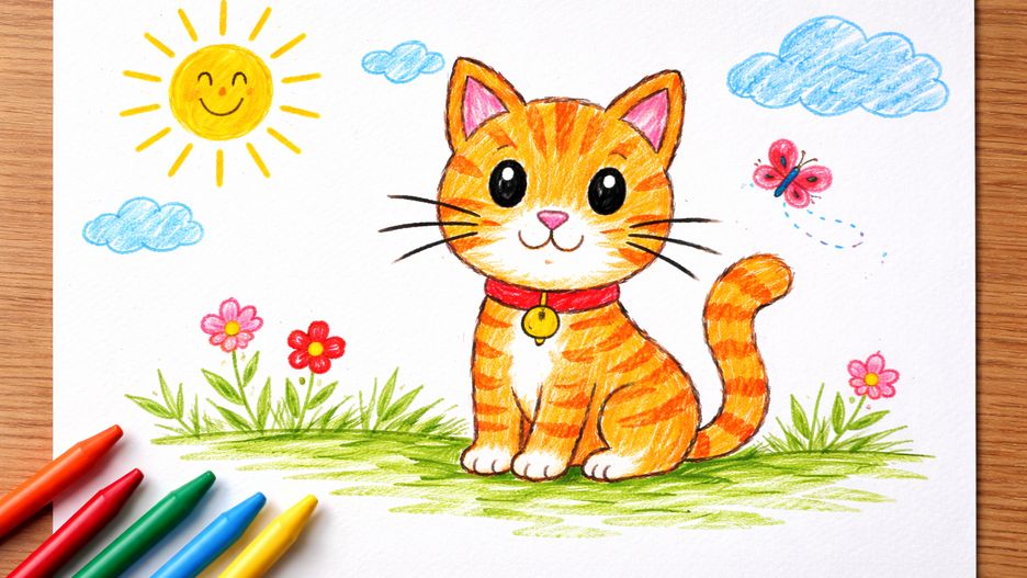 Zadanie jest proste: stworzyć pracę przedstawiającą kota. Może to być domowy pupil, podwórkowy włóczykij, bohater książki albo całkiem wymyślone zwierzę. Dzieci mają pełną dowolność techniki — farby, kredki, kolaż, a nawet materiały przestrzenne. Liczy się pomysł i dziecięca wyobraźnia.